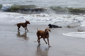 Dogs vs. seal — Mavericks Beach